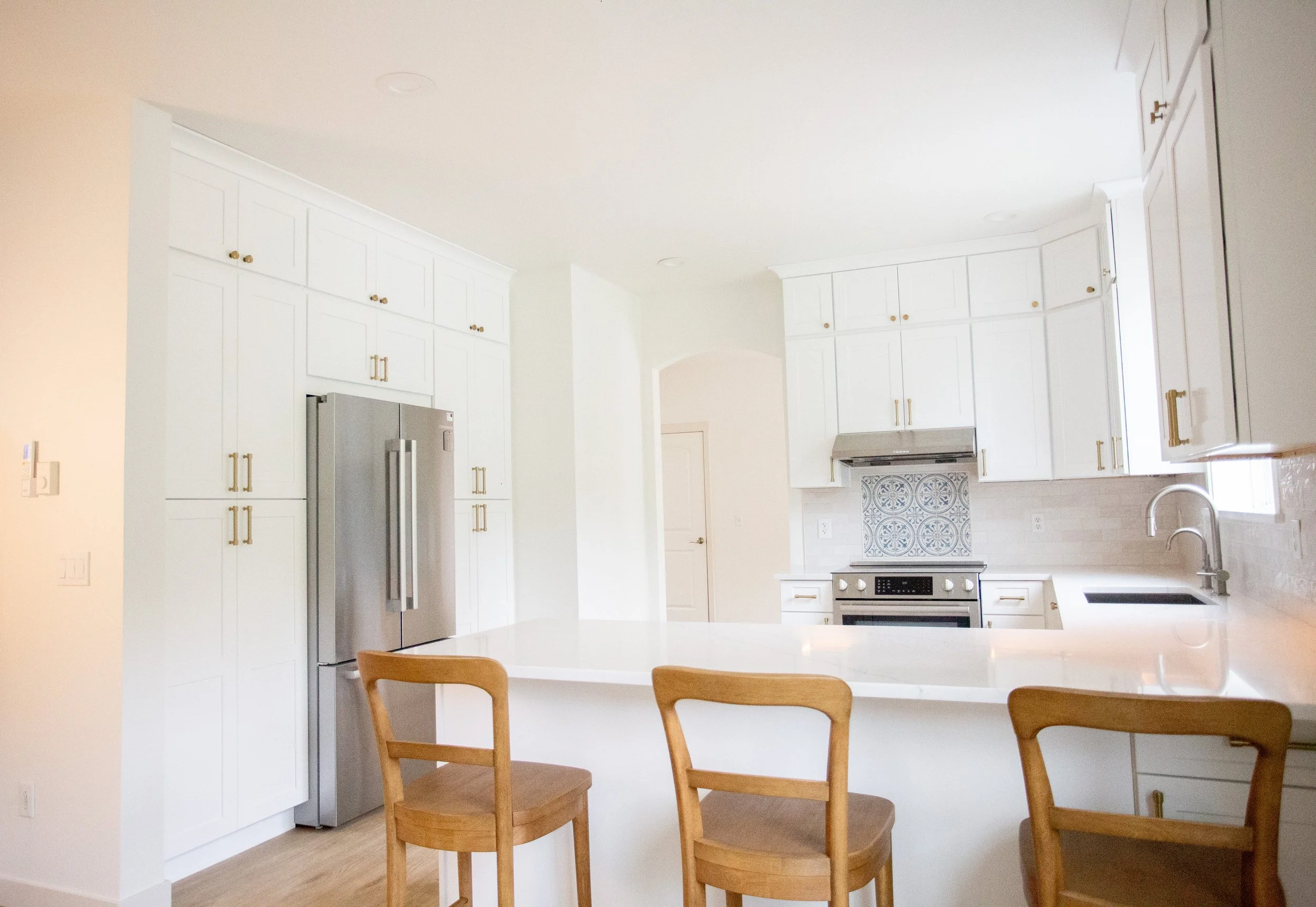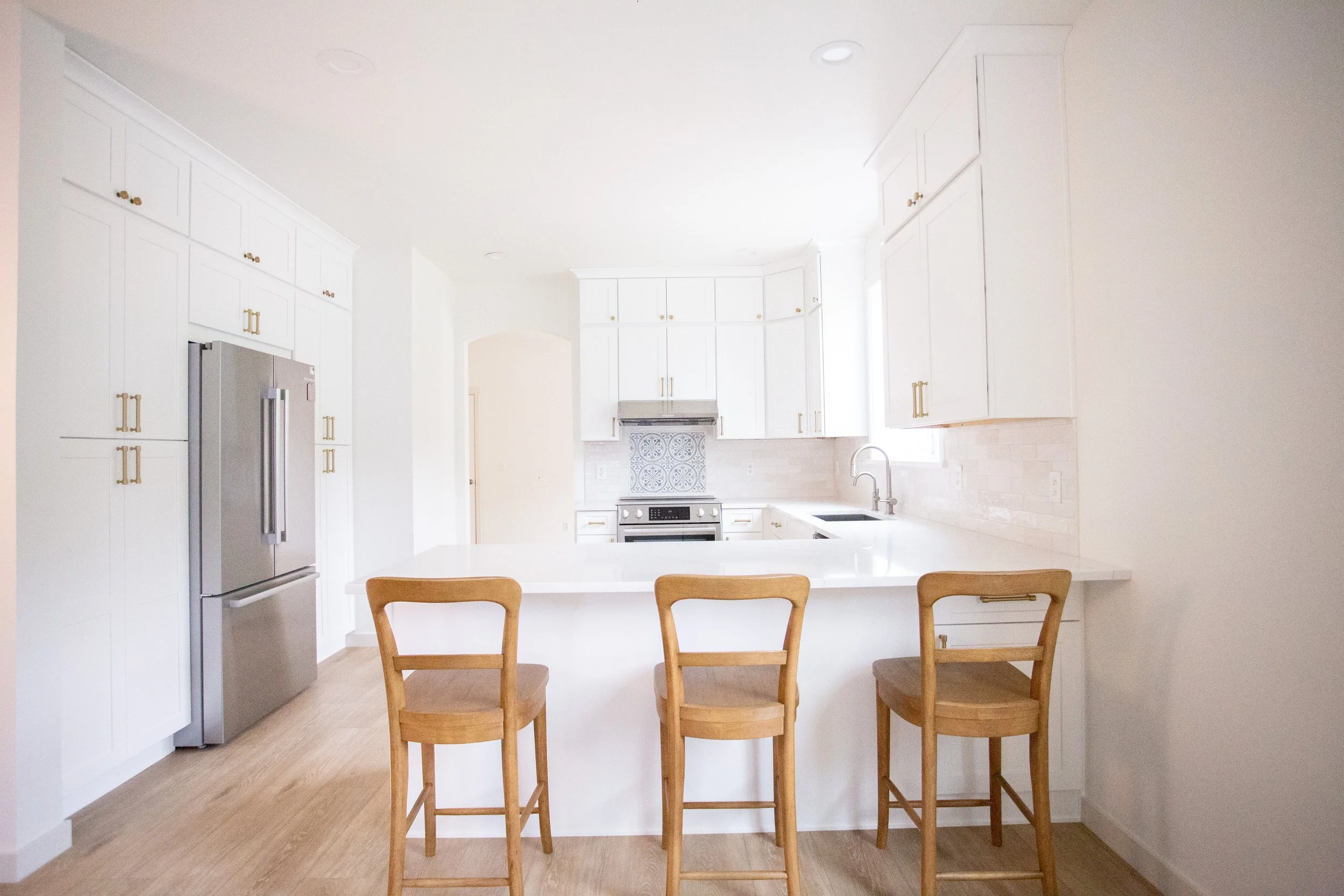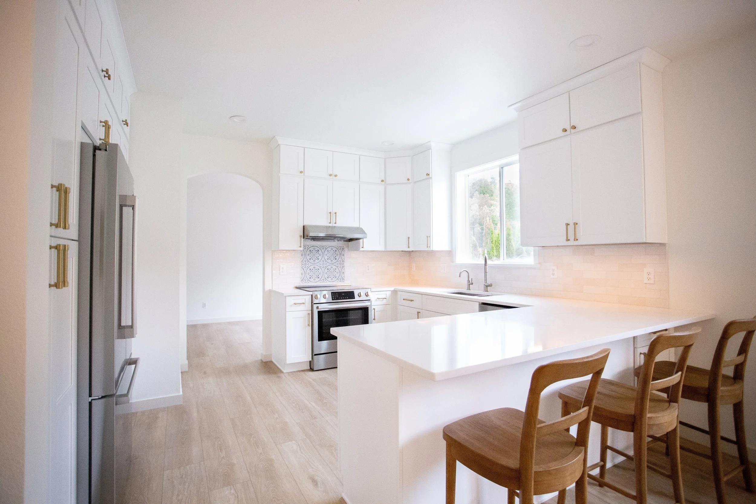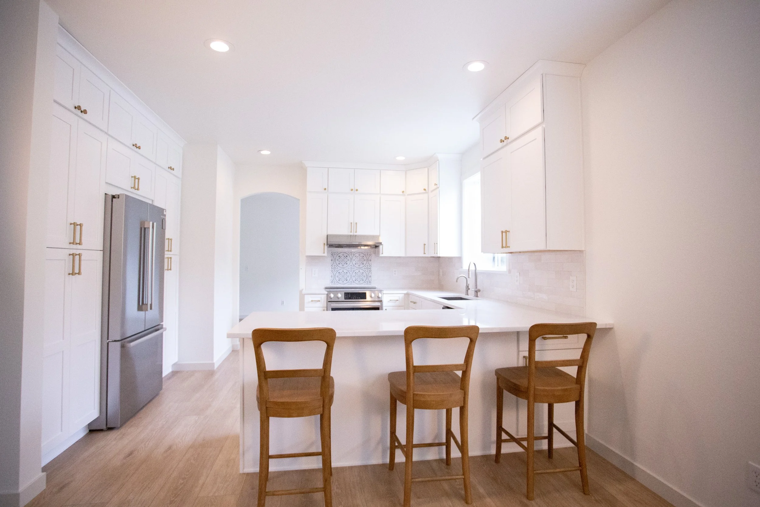 This client loved to cook, but was getting fed up with their small, inefficient kitchen. We were able to re-imagine their kitchen, and create under stair storage/kids hide out with the dead space.